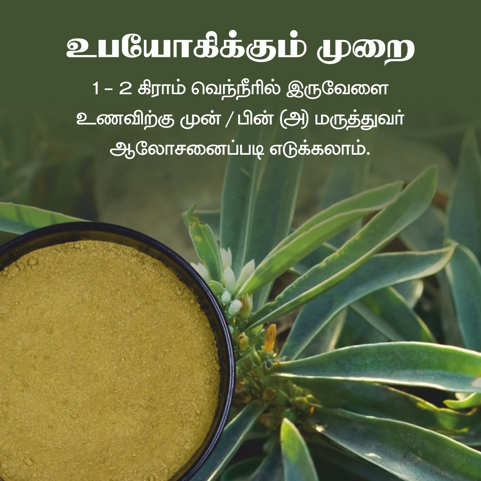 👉 Mix 1 teaspoon of Vellarugu Powder with warm water or buttermilk
