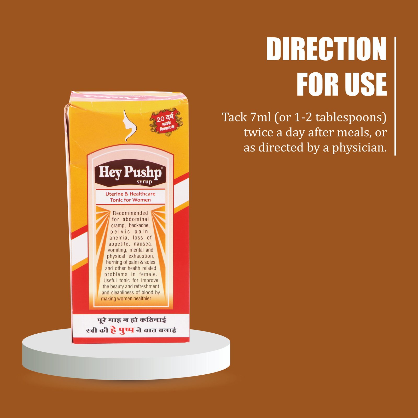 Hey Pushp Syrup (ஹே புஷ்ப் சிரப்) is a herbal uterine & healthcare tonic for women that supports menstrual health, reduces weakness, and improves overall vitality.