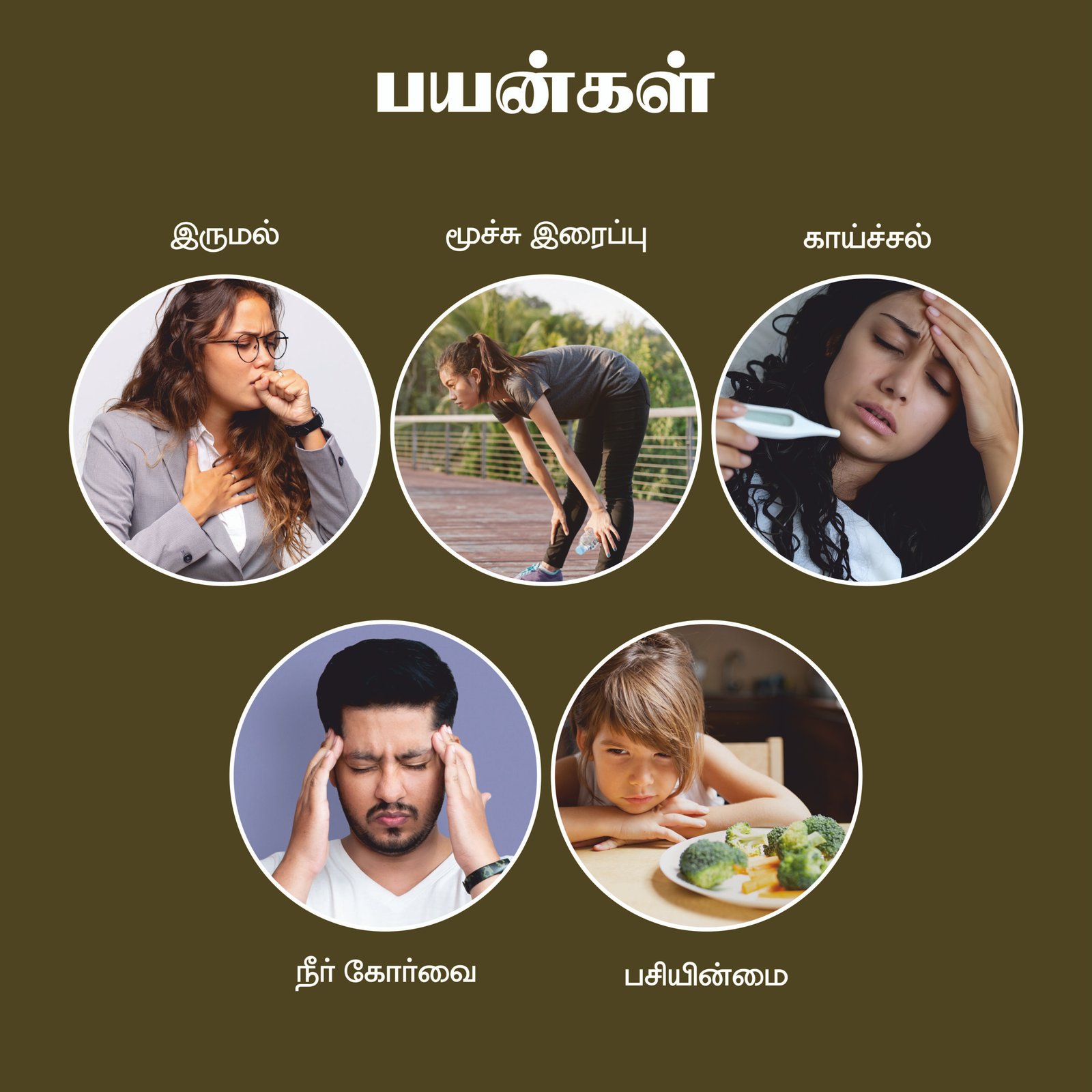 Kandankathiri Powder helps in treating respiratory diseases such as asthma, wheezing, cough, cold, and bronchitis. It is also useful for digestive disorders, urinary problems, fever, and skin diseases.