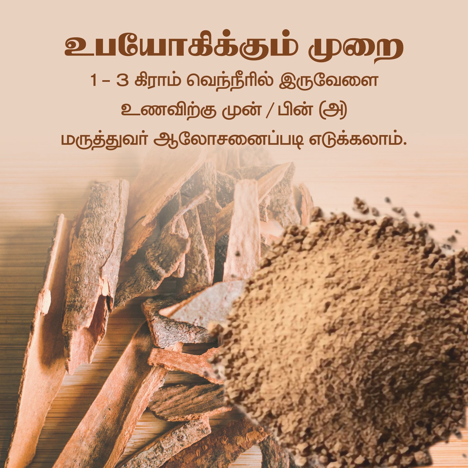 🟢 1/4 – 1/2 teaspoon மருதம் பட்டை பொடியை