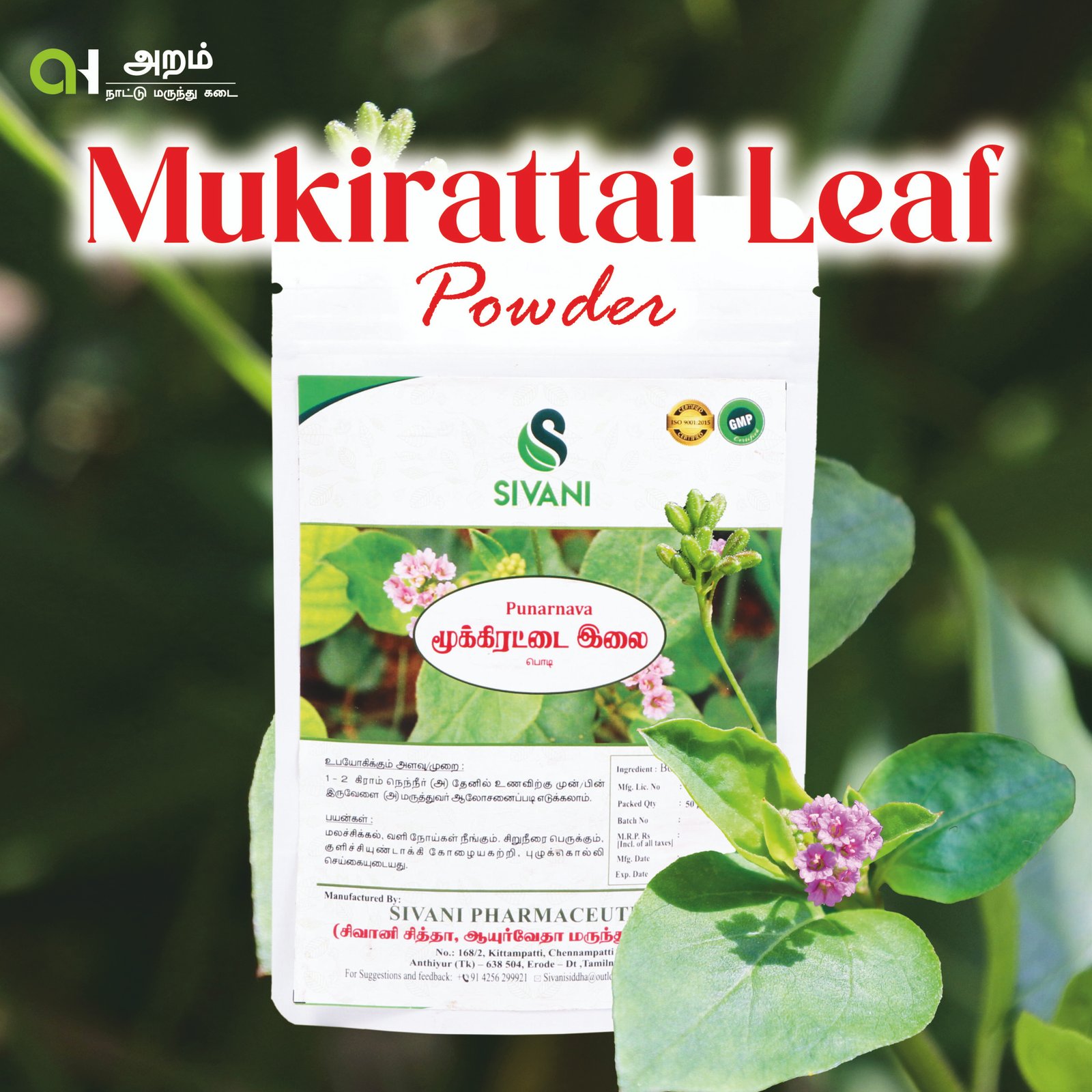 🌿 Prepared from carefully cleaned, shade-dried, and finely powdered Mukirattai leaves