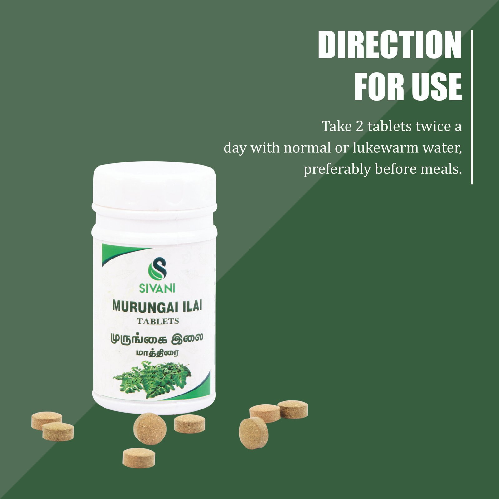 Murungai Ilai Tablets are prepared from pure Murungai (Drumstick) leaves, known for their high vitamin, mineral, and antioxidant content.
