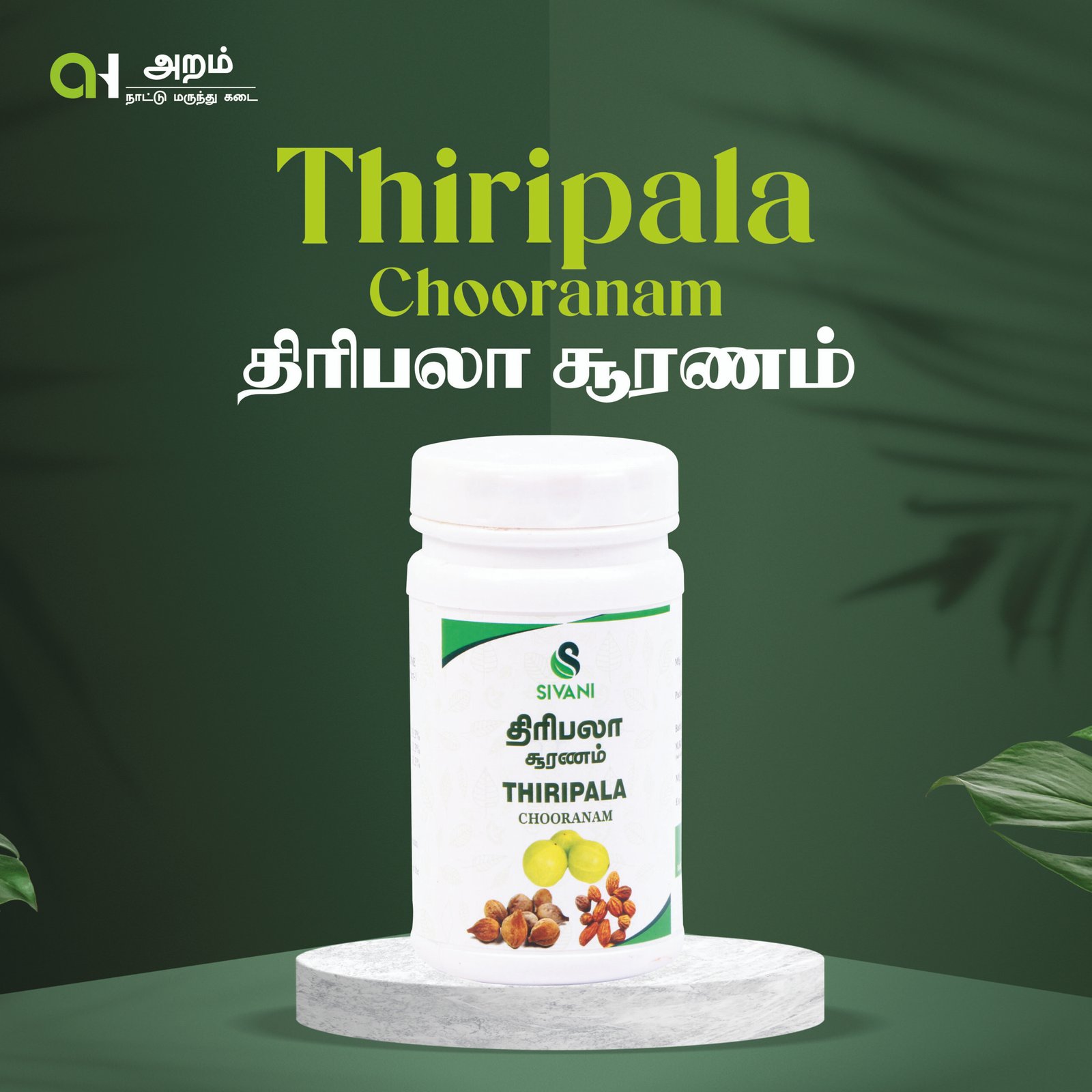 Thiripala Chooranam is a time-tested Siddha medicine prepared using the powerful combination of three sacred fruits, traditionally used to cleanse the digestive system and balance all three doshas (Vatham, Pitham & Kabham).